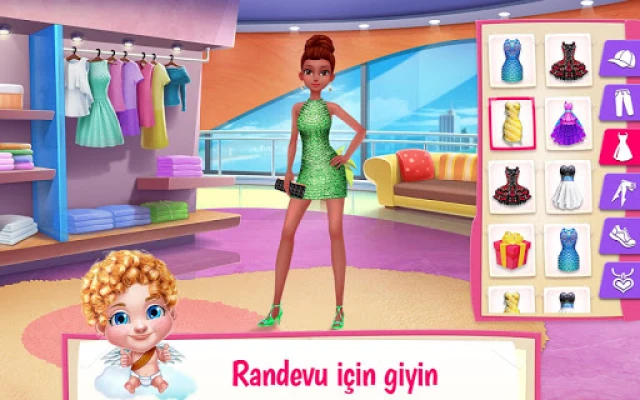Tarz ve özgüvenle donanmış müşterilerini şimdi büyük buluşmaya yolla! İster parkın huzurlu köşelerinde, ister sinemanın karanlık atmosferinde, ya da gece kulübünün hareketli ışıkları altında olsun, her randevunun kusursuz geçmesi senin sorumluluğunda. Hatta onlara aşkın ritmini yakalayacakları özel dans dersleri bile verebilirsin, böylece potansiyel sevgililerini dans pistinde etkileyebilirler. Ve tüm bu çabanın doruk noktası? Randevunun o beklenen ilk aşk öpücüğüyle taçlanması! Bu romantik görevde seni de unutmadık; kendi kanatlarını ve giysilerini seçerek, sen de gerçek bir Aşk Tanrısı edasıyla parlayabilirsin. Kazanacağın aşk iksiri güçlendirmeleri ve eğlenceli ödüllerle bu macera hiç bitmeyecek.